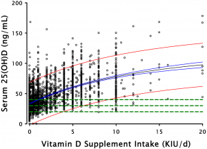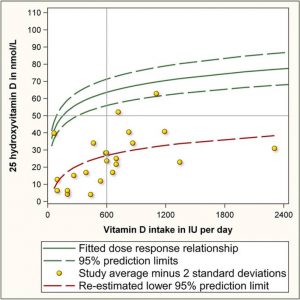 Comment: This is a graph that I keep close at hand as I share it with patients very frequently. It shows how diverse the requirements are to achieve adequate serum vitamin D levels, and how the actual supplementation level to get most people into target range is far higher than the IOM recommendations, which were […]
