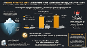 Comment: It is ‘common knowledge’ that higher iodine supplementation is dangerous. However this review clearly shows the distinction between the ‘healthy majority’ and the ‘vulnerable minority.’ While most individuals possess a robust capacity to handle high iodine loads (via the Wolff-Chaikoff escape mechanism), the data here is a reminder that doesn’t apply for specific subgroups. […]