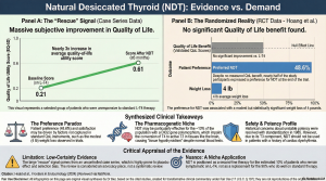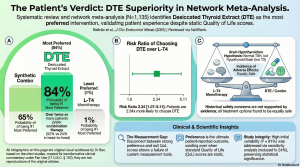 Comment: This is a powerful meta-analysis that validates what we and our patients have known for decades. The data is clear: patients overwhelmingly prefer combination therapy, and the network meta-analysis highlights that desiccated thyroid extract (DTE) is the most preferred intervention of all. What’s particularly telling is the discrepancy between patient preference and the results […]